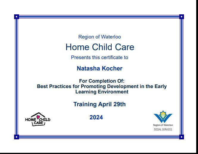 I strive to make my home a welcoming, inclusive space where families feel truly seen and supported. I value diversity, kindness, and community, and I work to create an environment where children learn not just academic skills, but how to care for themselves, for others, and for the world around them.
